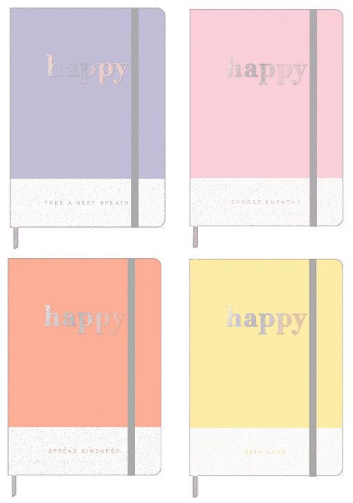 O Caderno Sem Pautas Costurado Capa Dura M Happy 90 Gramas 80 Folhas é ideal para o dia a dia. O produto possui capa dura com fechamento em elástico, fitilho para marcação de página e 80 folhas sem pautas, com gramatura 90g/m².