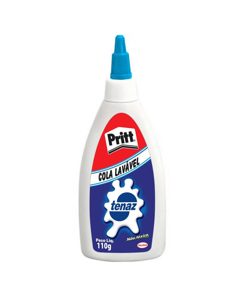 A Pritt Tenaz é uma cola líquida que se aplica branca e seca transparente.