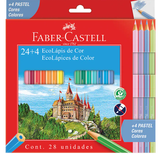 Produzido com madeira 100% reflorestada , certificado pelo FSC® 24 Cores + 4 cores Pastel Cores mais vivas Formato sextavado